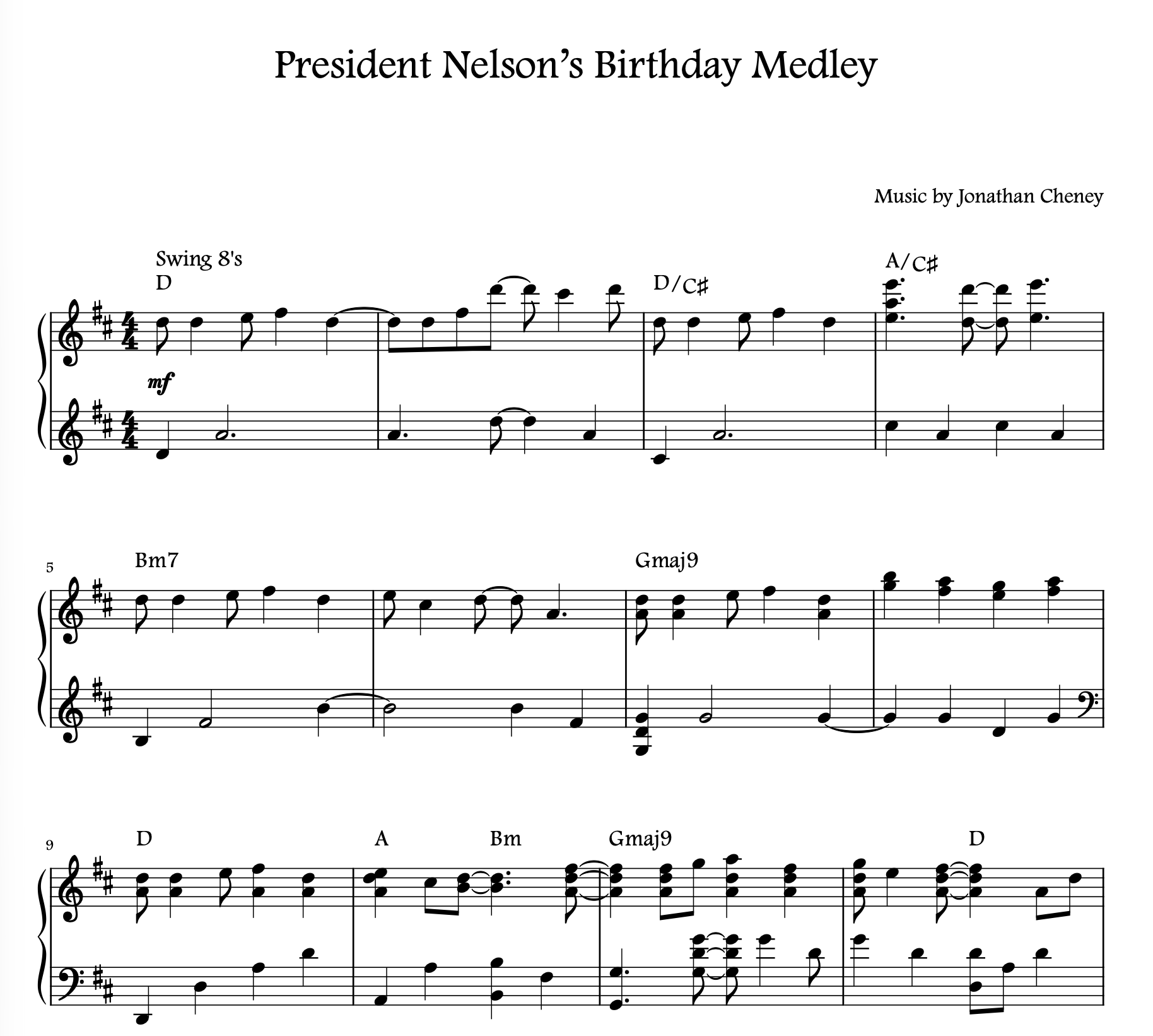 So this sheet music is just a direct transcription of that song. The song wasn't neatly organized or pored over for weeks trying to get it just right. This was the product of just 30 minutes of messing around so I could post something that night for the prophet. While President Nelson has since passed, this song is a fun reminder of the wonderful teachings he brought to the world."